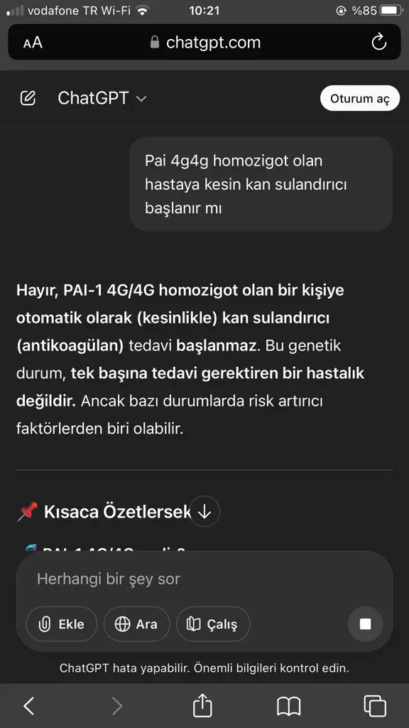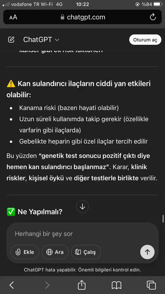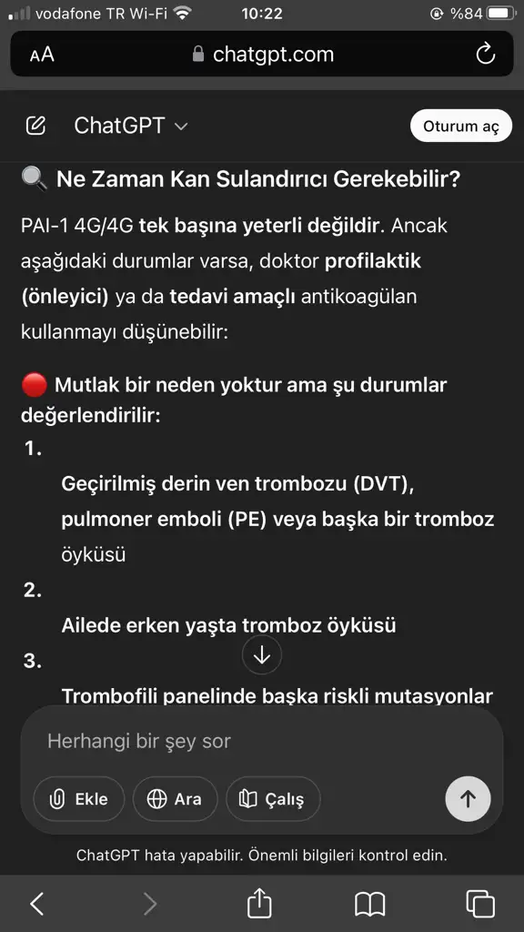 Bu bilgileri ancak ChatGPT verir zaten çok komik cidden ya 🤣 yazdığı makalelerin DOI numarasını isteyin tabii haberiniz varsa. Faktör V de direkt başlanmıyor sulandırıcı zaten. Lütfen sürekli “yanlış” demeyeceğim artık yalan haber yaymayın. Siz bu bilgileri nereden duyuyorsunuz 🤣🤣🤣 faktörV İlla bir tane maalesef düşük bekleniyor eğer tromboz öyküsü yoksa. Sizden daha iyi bildiğim kesin de herkesten değil. Vaktim değerli sizinle harcamayacağım.