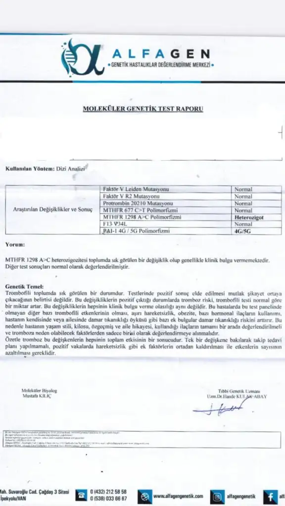 Kızlar merhaba daha önce bir kimyasal birde 6 haftalık kürtajım var o yüzden genetik testler ile kan pıhtılaşma yaptırdık kromozomsal bir sorun yok onlar temiz çıktı şükür ama pıhtılaşma sonuçları bu şekilde çıktı bunları yorumlar mısınız daha önce bu şekilde başına gelen var mı yaşayan yada sonucu bu şekilde çıkan ?