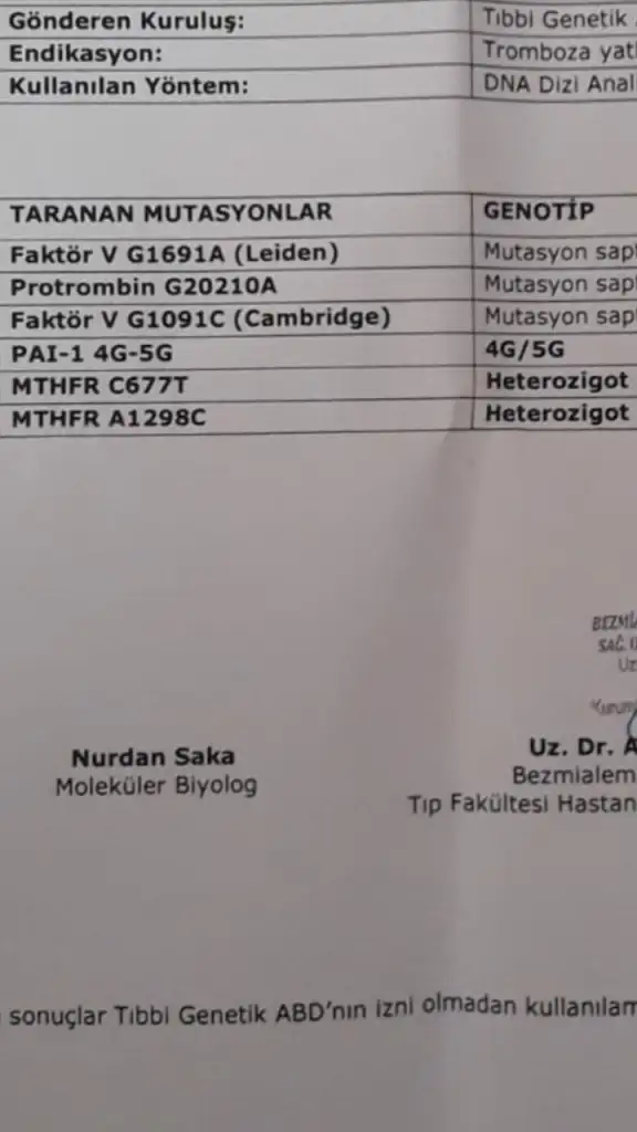 Çok geçmiş olsun inşallah son olur....Hangi genlerde sorun vardı sizin?Canim sakin riske atma beta hcg de gebelik cikar cikmaz igne iste.benim 4 tane gebeligim heba oldu. Banada doktor pirtilasmaya yatkinlik var az ve cok onemli degil dedi. Benim yaptigim hatayi yapma getekirse doktorunu degistir