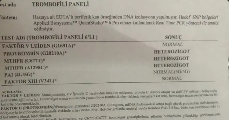 Yatıp kalkın dua mı edermisiniz çok sevinirmisin bilmem ama protrombin iyi ki ama iyi ki heterozigot ve pai de homozigot iyi ki iyi ki degil 4g/4g olması iyi.
