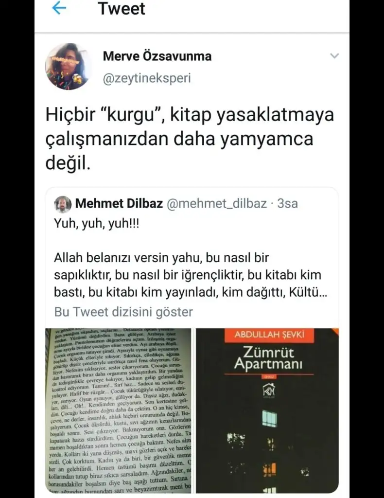 Kahretsin o savunanları Allah belâlarını versin elim ayağım titriyor bu nasıl kurgu sapıklık pislikO kitap 6 yıldır basıliyormuş bide onu savunanlar var kurguymuş bilmem ne
