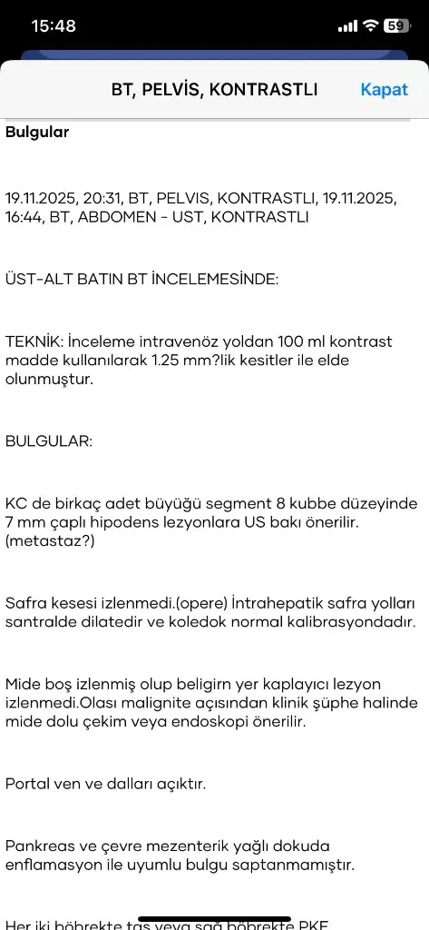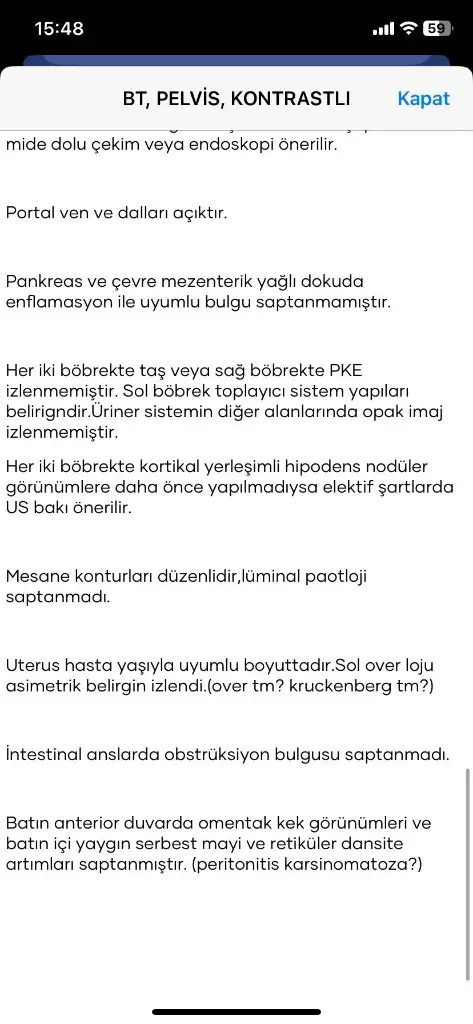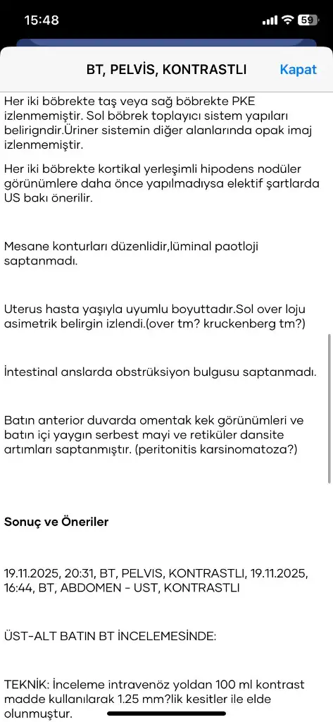 annemin aşırı karın şişliği şikayeti ile garstroentoroloji ye gittik henüz bize bişey demediler ama BT raporunda yumurtalık kanseri kesin gibi duruyor ama karın zarı karaciğer bu bölgelerde de sanki yayılma var rapora bakar mısınız sizde çevrenizde bunları yaşayıp atlatan var mı iyi hikayelere duymaya o kadar ihtiyacım varki dört aylık bebeğim var bir yandan da kendime de bakmam lazım ama olmuyor
