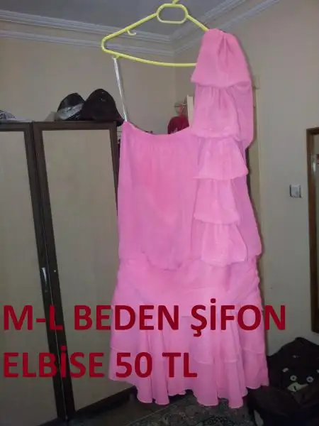 ilk baştaki pembe göğüs kısmı tül olan elbisenin boyu nereye kadar peki bedeni filan nedir