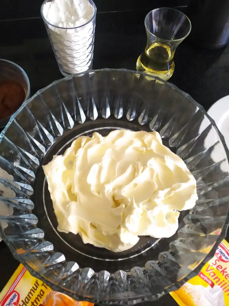 Yarım kabartma tozu ve vanilyayi ilave ediyoruz
