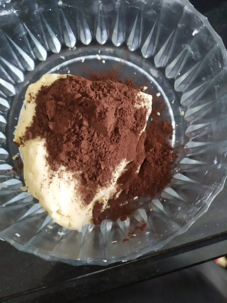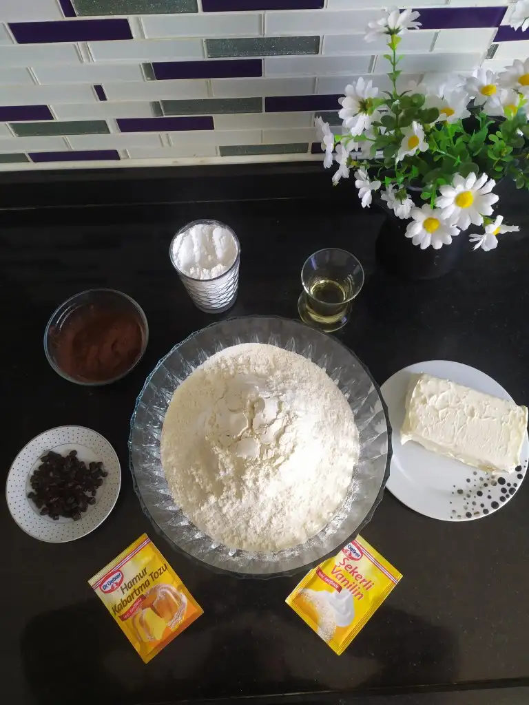 Sonra ayırdığımız hamurun birine kakao karıştırıyoruz