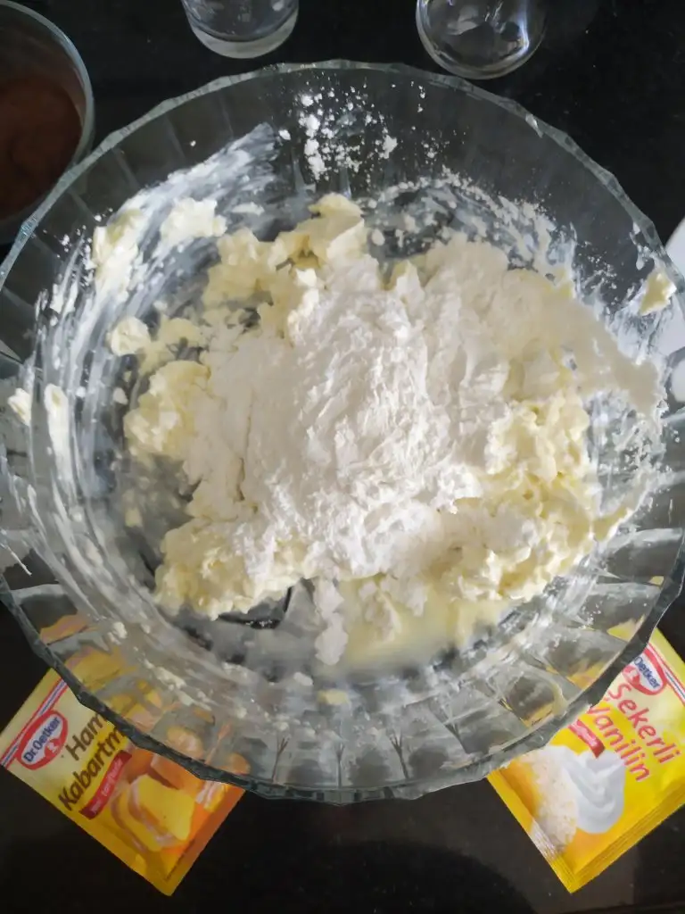 Sonra bir su bardağı pudra şekerini de ekleyiiip,