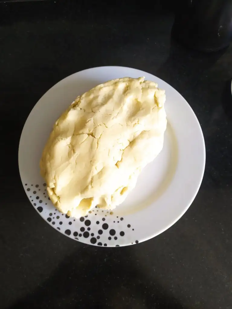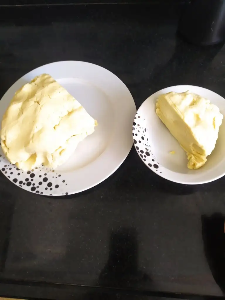 Sonra bir miktar hamuru ayırıyoruz. Ama ben burada çok az ayırmısim. Sonra o ayırdığım küçük parça yetmedi ve yeniden yapmak zorunda kaldım. O yüzden siz en iyisi bunun yarısını ayırın.