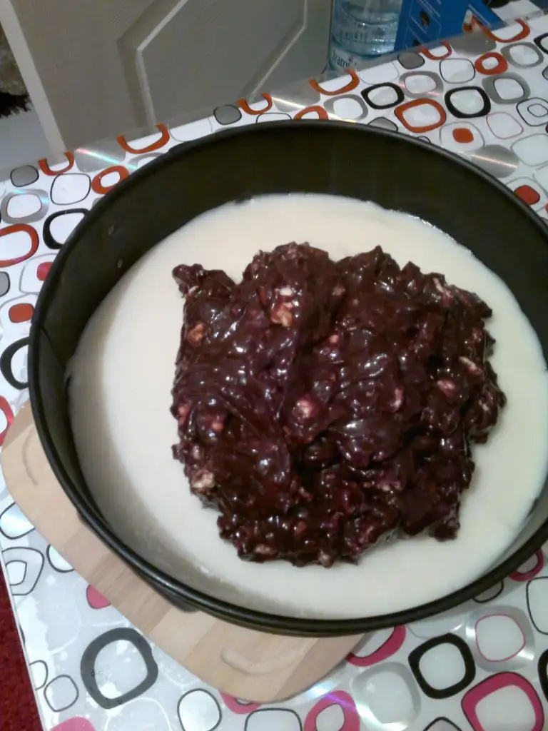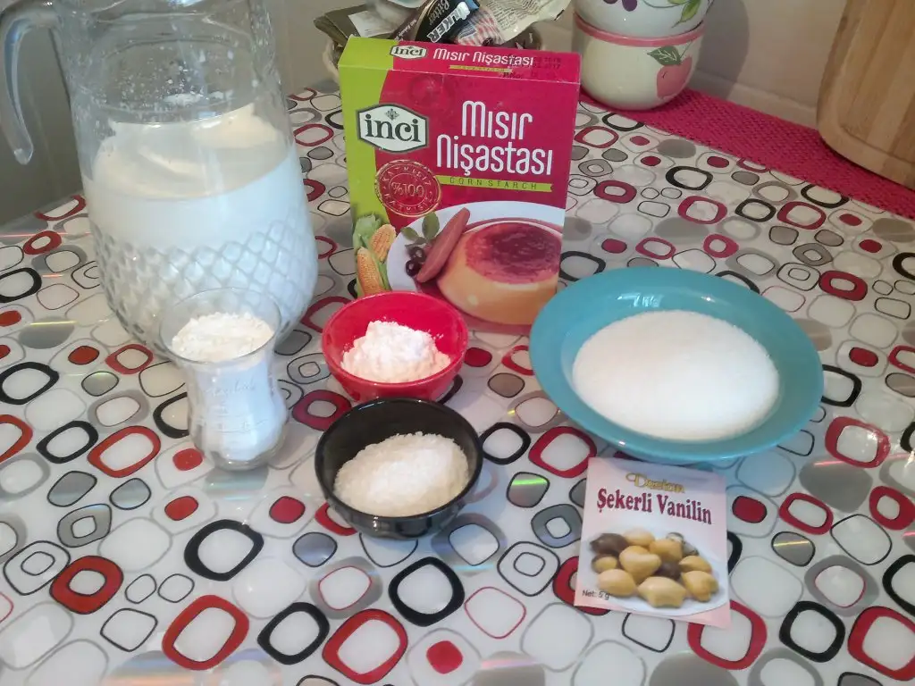 Alt taban icin...Sutu..sekeri..unu..nisastayi.vanilyayi muhallebi kivaminda pisir..ilit hindistan cevizini ekle..Kelepceli kaliba yarisini dok..diger yarisini kenara kaldir..