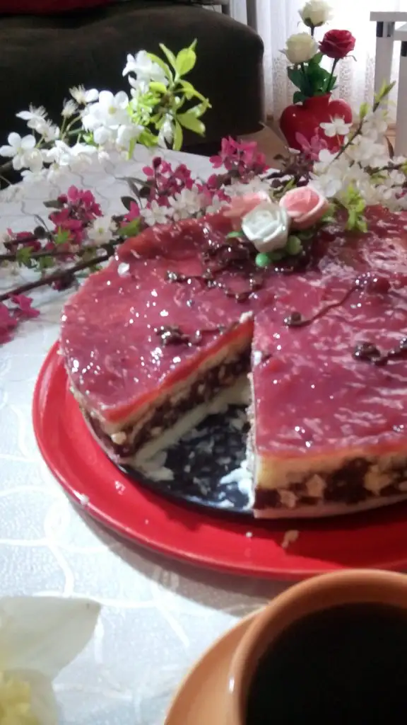1 kase receli.2 bardak su ..2 kasik misir nisastasi ile pisir..muhallebi kivamina getir..sogut malzemanin ustune yay..5 saate yakin buzdolabinda beklet kelepceyi cikart istege gore susle.....