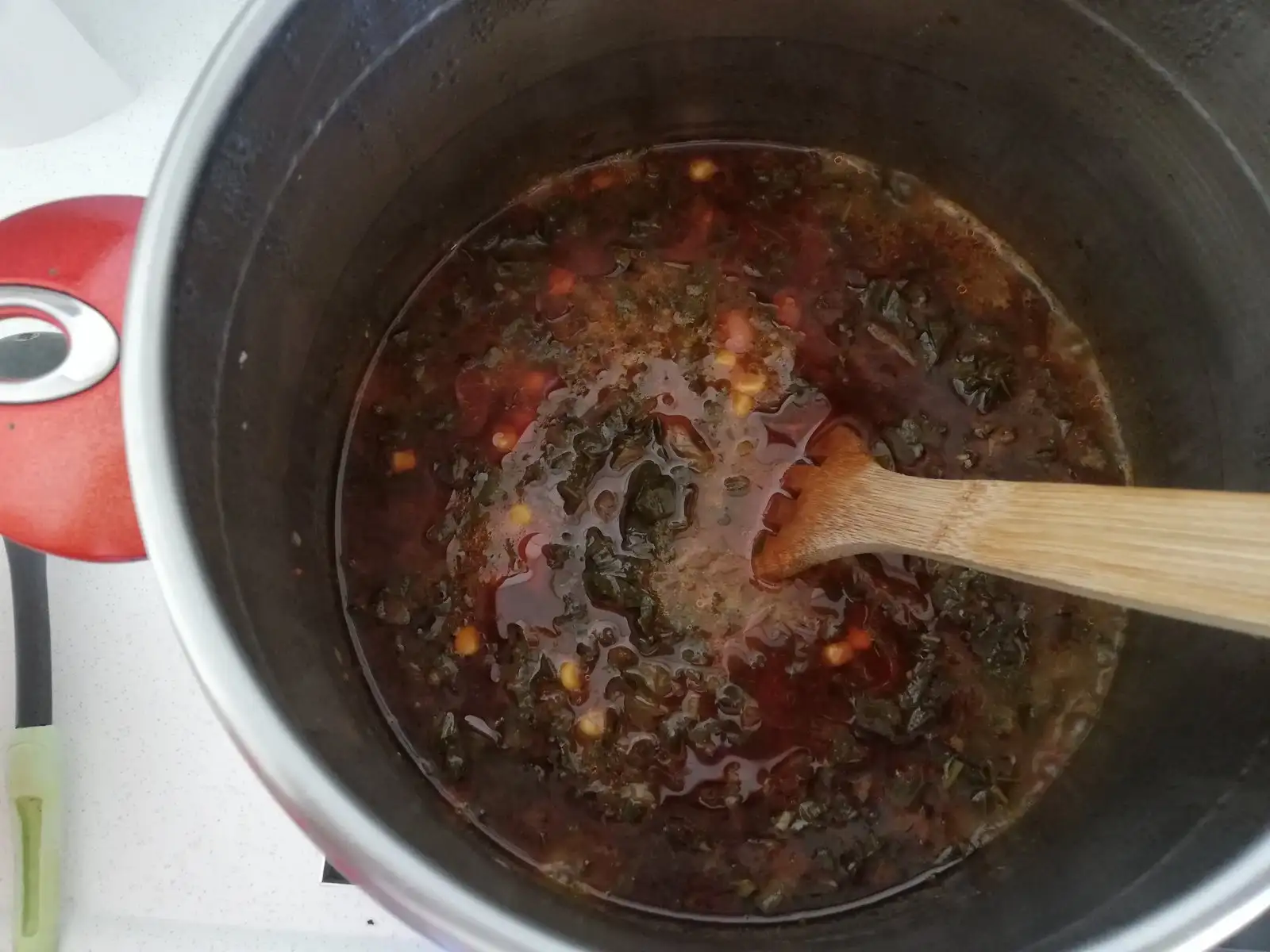 Havası çıktıktan sonra tencerenin kapağını açıp mısırı, barbunyayı ve suyla açtığımız mısır ununu çorbaya ekliyoruz.