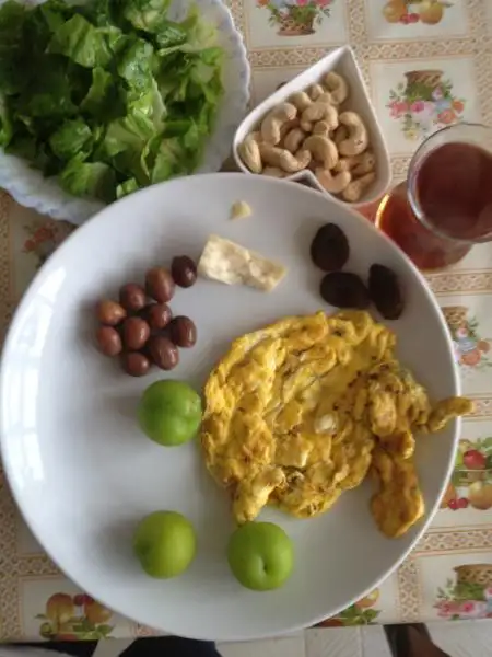 bende 2 domates ve salatalığı ortadan ikiye böldüm biraz peynir 3 ceviz ve 5 can erik yedim