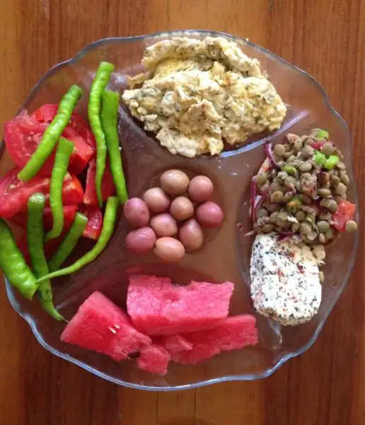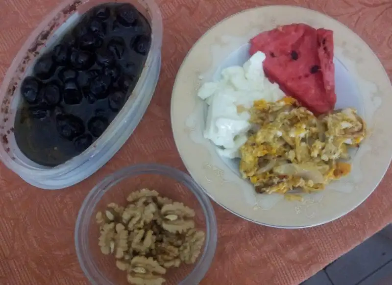 soğanlı yumurta, peynir, zeytin, karpuz ve ceviz ..