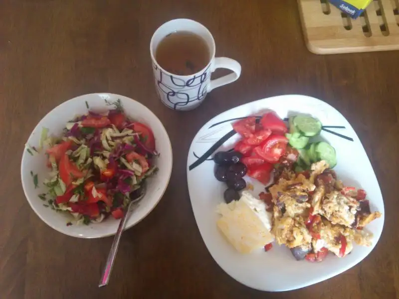 gittim heyete seçtiğim menüde göksu çorba var onda prinç var daha önceki yemeklerden biliyorum, bana unsuz bir çorba getirin dedim borç çorbası getirdiler içinde un yok ama lahana ve havuç rendesinden yapılmış bişey lahana ve suyundan biraz içtim,,,salataya bol zeytinyağı döktürdüm,,içecek sadece su aldım,,,karışık kebap seçmiştim menüde o geldi ufak tabak lahmacun vardı onu yedim, tavuklara ellemedim,,adana ve şiş kebapları yedim,,,ara sıcak su böreği vardı istemedim karalahana dolması geldi minik minik ti içini açtım prinçlerini temizleyebildiğim kadar temizledim 2 tane de ondan yedim....tatlı istemem dedim adamlar hiç bişey istemiyorsunuz diyorlar,,,,,millet bedave diye silip süpürüyor adamlar ona alışıklar ya ben garip geldim onlara