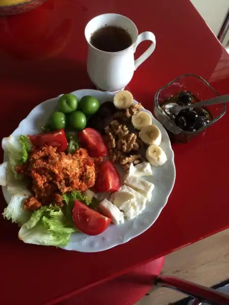 En klasiğinden Karatay kahvaltısı ama sadece üç tane zeytin yiyebildim. Zeytin yiyemiyorum ya
