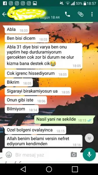 Gördüm. Kardeşin çok abartmış yani anlatım tarzı çok abartılı dünyanın en büyük suçunu işlemiş gibi anlatmış. Tamam yaşı küçük ama çoğu kadının yaptığı bir şey bu. Abartmaması bağımlılığa dönüştürmemesi kaydıyla masturbasyon yapmasında bir sakınca yok. Bağımlılığa dönüşmesi psikolojik bir sorundur psikologa yönlendirinAşağıya ekran fotografini koydum kendi kendime uydurup yazmıyorum.