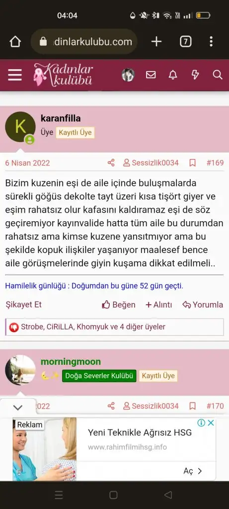 Ah çok teşekkür ederim beni anlamış olduğunuz için anlatmaya çalıştığım tam olarak cümleleriniz..Avrupa da bile bu genişlik yok daha önce kıyafetleri nedeniyle kardeşimle de çok atıştı ama artık kendisi bırakmış mücadeleyi ..Akrabalar arasında da bu kıyafet mevzusu nedeniyle herkes rahatsız kimse görüşmüyor ki bizler kapalı insanlar değiliz.. Biz de evimizde elbise şort giyiyoruz ama misafir gelince üzerimizde gecelikle bikiniyle insanların karşısına çıkmıyoruz orası yazlık bi evde değil kendi yaşadıkları deniz kenarında olmayan havuzlu bi ev 1 gün havuza da girmeyebilirsin bu genişlik biraz fazla edebinle giyinip oturup sohpet ettikten sonra kimse rahatsız olmaz..Ayrıca misafi olarak ağırlanmadık bize hizmet eden annem o kendi keyfindeydi..Hal böyle olunca kimse rahat edemedi ve artık gitmeyi düşünmüyorum..Keşke aile içinde bazı şeylere dikkat edilse ..Ben seni anlıyorum , öz kardeşi gibi görmesi lazımmış falan filan geçsinler bunları. Burda kimse bu kadın bikini giymesin içki içmesin demiyor zaten ama herşeyin bir adabı vardır. Bilmiyorum biz Türkiye’de büyümüş insanlarız sizlerin yazısını okudukça sanki hepiniz Avrupalı Amerikalı ailelerin evlatlarıymşsınız gibi anlaşılıyor. Herşeyin bir sınırı vardır. Kimse kimseye durduk yere çamur atma derdinde değil bu kadın da kardeşinin eşiyle kendi kocasını laf yapmak istemez tabi ki . Bunlara mahal vermemek için mesafe iyidir. O mesafeyi siz ayarlayacaksınız. Kasının şahsi yaşam tarzı sizi ilgilendirmez ama hareketleri rahatsa hoş değilse ki bana göre de hoş değil bu kadar aşırı rahat olmak bizim kültürümüzde özellikle. Ona göre davranın. Ben sizi çok iyi anladım. Herkesin yaşam tarzı bir değil. Herkes özgür tamam buraya kadar okey ama özgürlük diye diye de edep hayayı unutmamak lazım herşeyin sınırı olmalı.