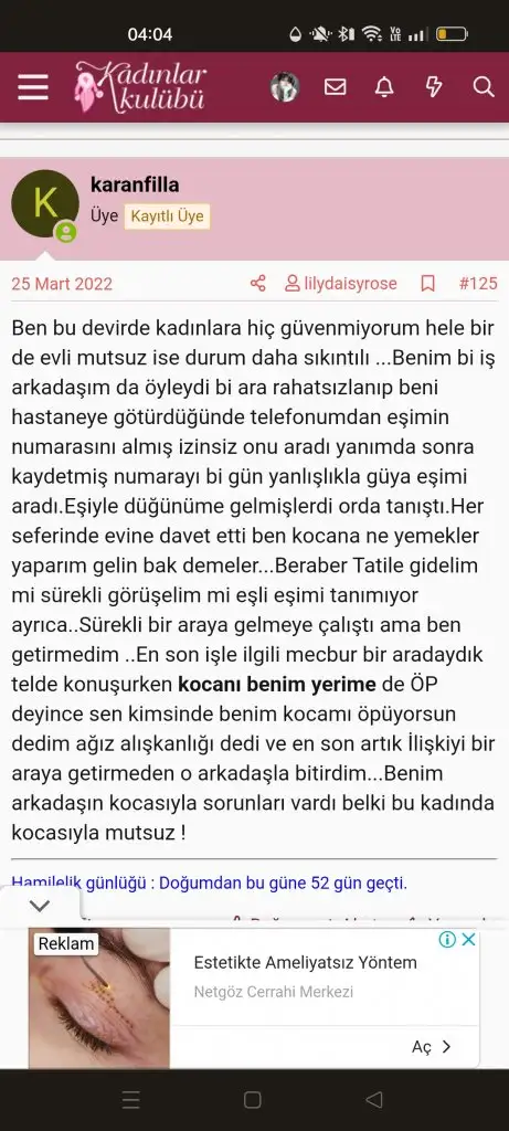 Kıskançlık değil maalesef bazı kadınlar aşırı rahat ve evliliğinde çok mutsuz ..Para tutuyor evliliklerini kesinlikle yanılmadım ..Kimseye güven yok bu devirdeAy yorulmamışta![]()