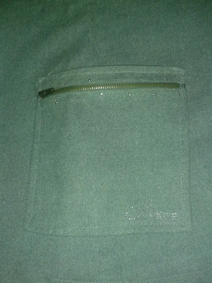 Sağ tarafta 1 cep var etekten bağımsız ve üstü fermuarlı ve Pinkie yazılı boncuk işlemesi var...