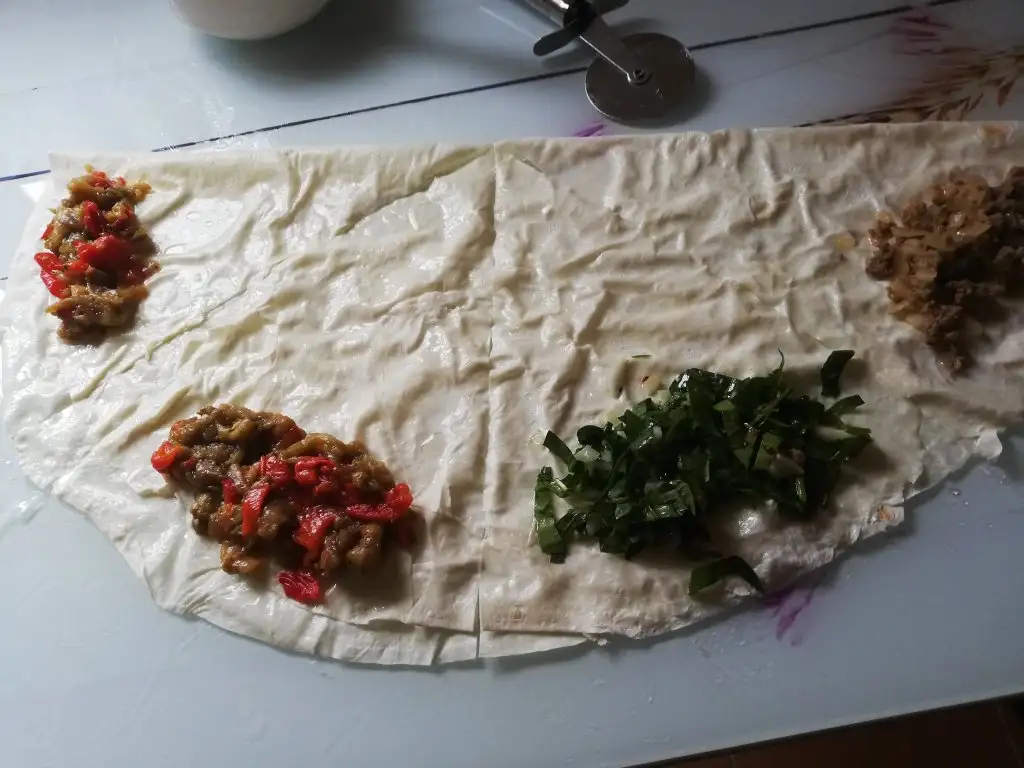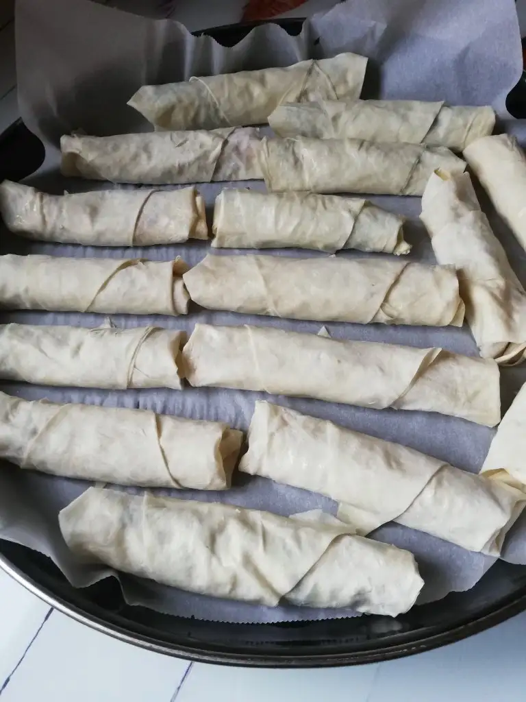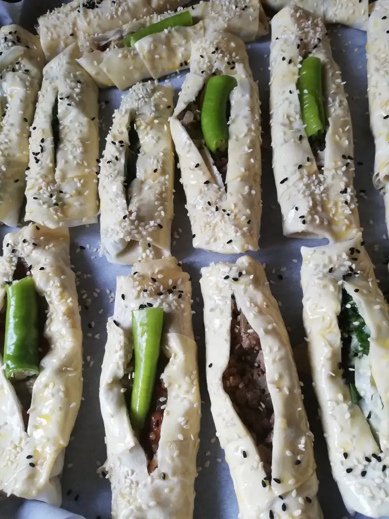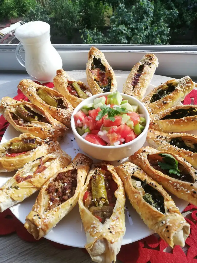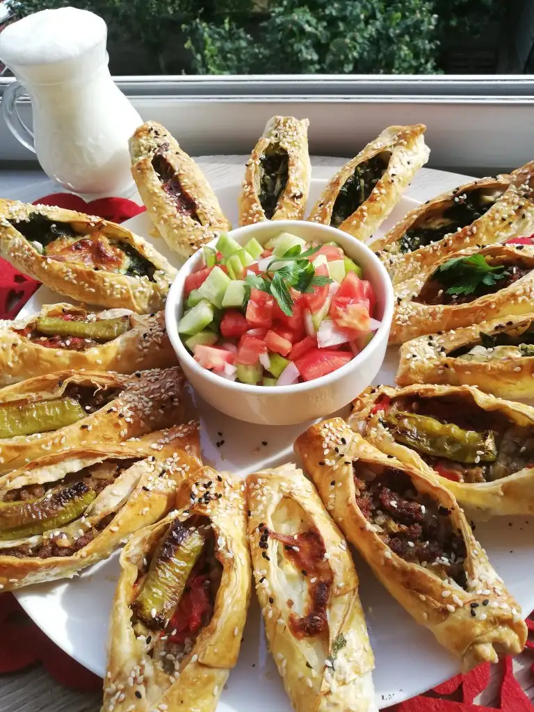 -İç malzeme izi biraz bol koyup kenarlardan katlayıp sigara böreği sarar gibi sarıp tepsiye dizelim.