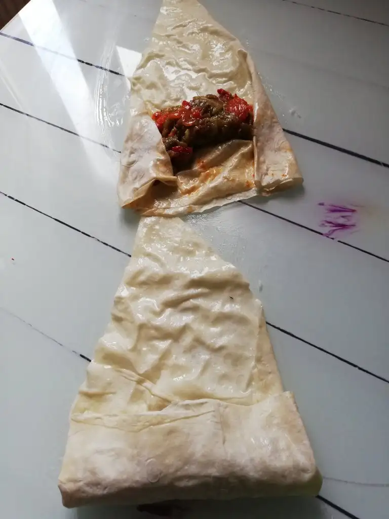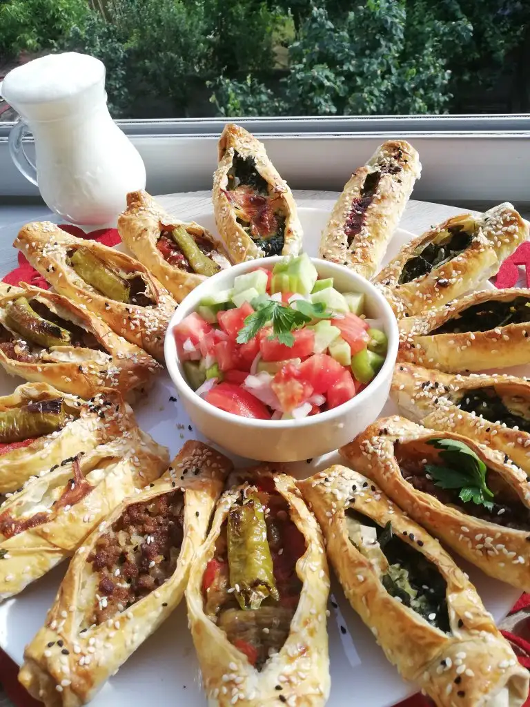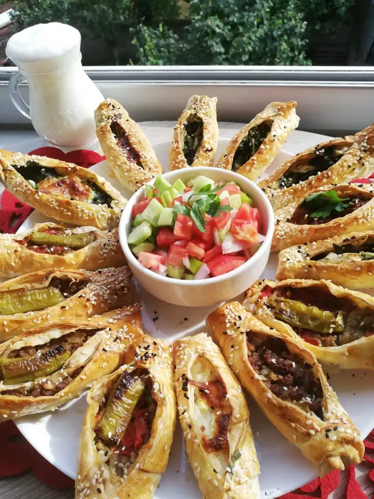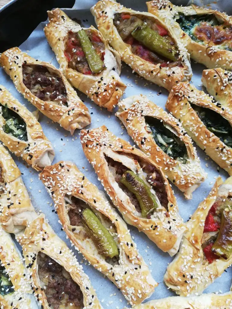 Hazır yufka ile sizlere karnıyarık börek yaptım. Yapımı basit, lezzetli ve davet sofralarına yakışacak bir tarif. İç harcını istediğiniz gibi yapabilirsiniz. Ben bazılarını köz patlıcanlı köz biberli, bazılarını kıymalı bazılarını da ıspanaklı yaptım, hatta ikisini de peynirli yaptım