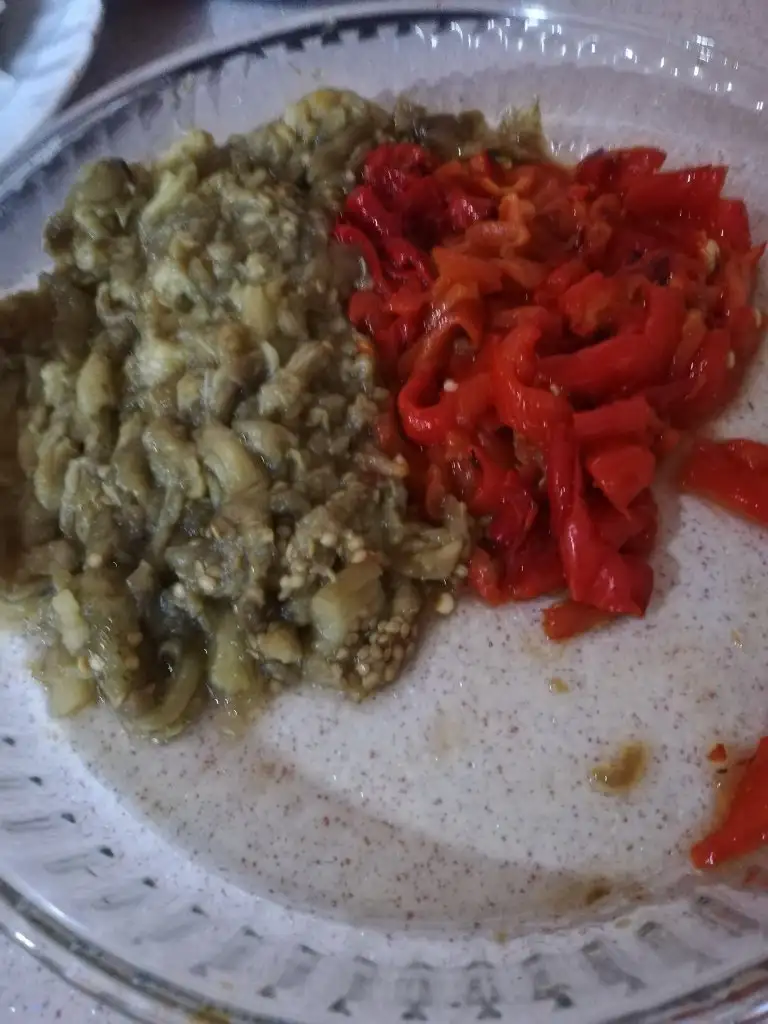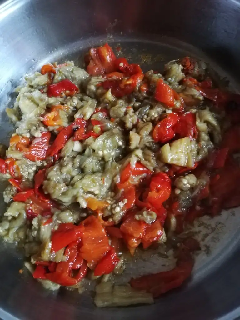 - 3 patlıcan ile birkaç kapıya biberi, az sıvıya, küçük diş sarımsak (isteğe bağlı), tuz, baharat
