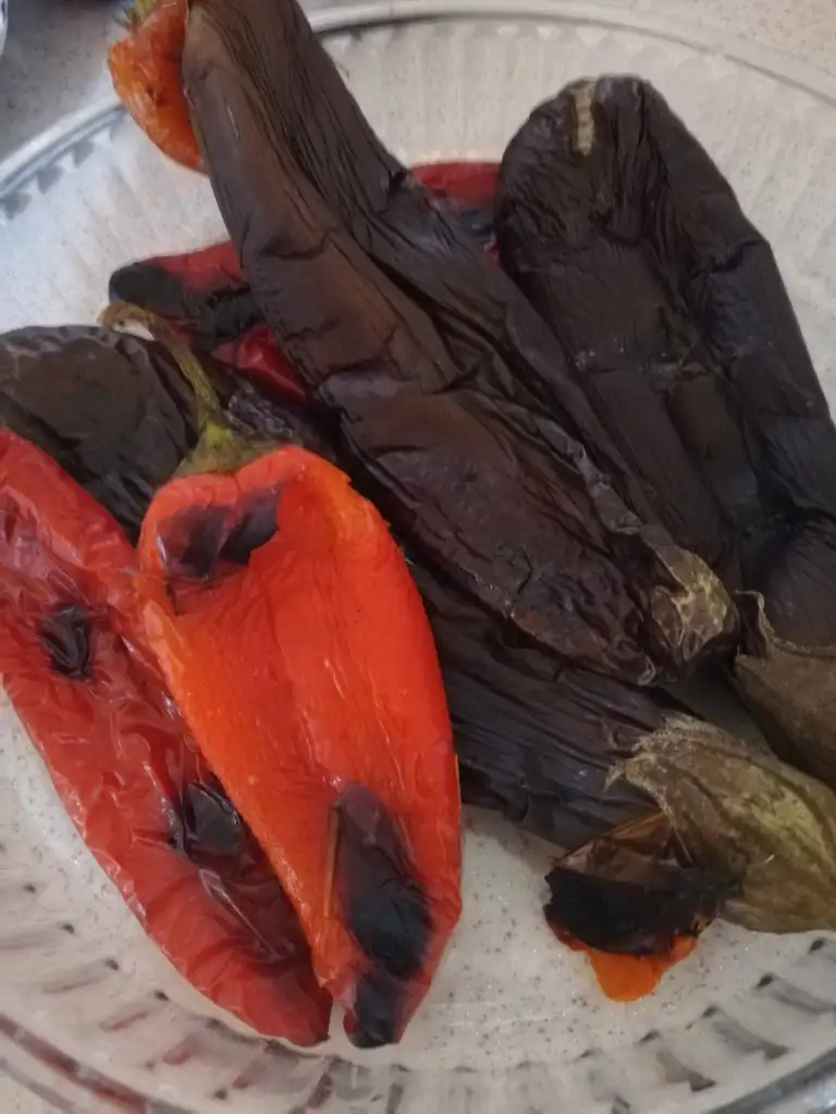 Önce iç malzemelerimizi hazır edelim. - - - Patlıcan ve biberlerimizi ister tüpte ister fırında közleyelim. Közlenen patlıcanlarımızı ve biberlerimizi soyup, doğrayıp az sıvıyağ ve küçük diş sarımsak tuz ve isteğe bağlı baharat ilave edip az kavuralım.