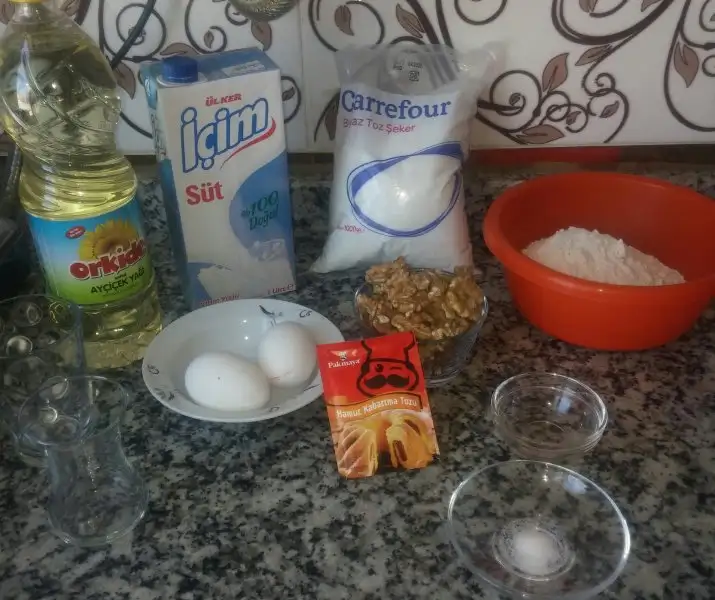 bir yogurma kabinin icine yumurtalari sivi yagi sütümuzu sirkemizi ve tuzumuzu ilave ediyoruz.ardindan unumuzu ekleyip yogurmaya başlıyoruz.(ben biraz yogurduktan sonra tegahin ustune alip devam ettim.daha rahat oluyor.)yetmedigi yerde un ilave ediyoruz.kulak memesi kivaminda bi hamur olacak.yogurduktan sonra üstünü bi poset veya nemli bi bezle kapatiyoruz.hamurun kurumamasi icin.