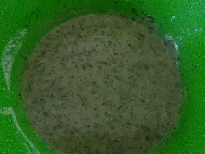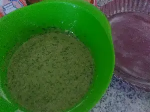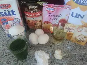 Daha sonra sıvı malzemeler yağ ve ıspanak püresi ,daha sonra un kabartma tozu ve vanilya eklenir.
