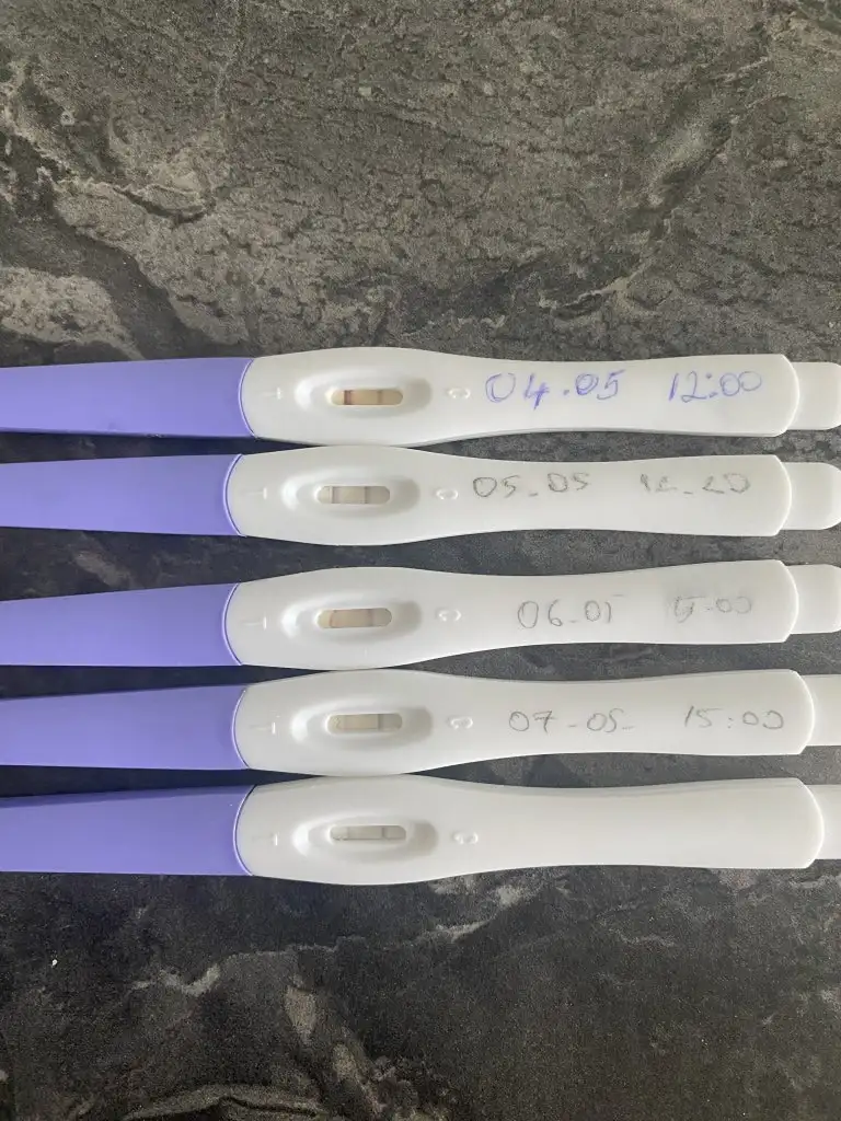 24 nisan son adet tarihimdi bu ay ovülasyon testi almaya karar verdim ama içinde 5 tane vardı ve eşim 4 mayısta almıştı bende 4 mayıstan itibaren yaptım 8 mayısta bitirdim zaten testi bi daha yapmadım aşağıdaki gibi ovülasyon test sonuçlarımda erken mi yumurtlamış oluyorum
