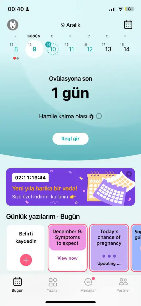 Kızlaar benim bat 9 aralık, reglime 5 gün kala hafif kasık batmalarım başladı, göğsümde ultra hassasiyet yok ama dokununca çok az sızı hissediyorum. Akıntım dün çok fazlaydı bugün daha az. Kasıklarım hâla ara ara batıyor 5-6 sn sonra geçiyor. Özellikle solda hissediyorum. Artımed test yaptım ama negatif çıktı. O markaya pek güvenilmediği söyleniyor. Sizde durum nedir