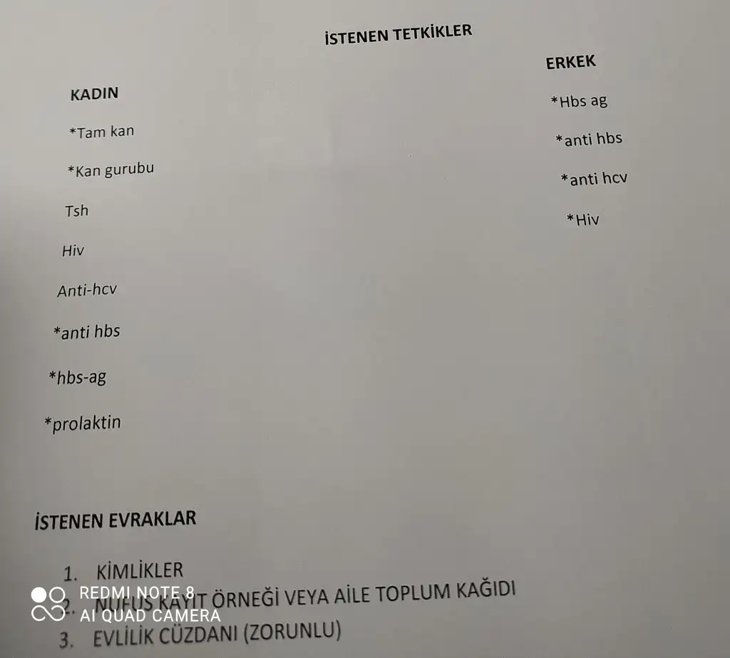 Özelde mi basliyorsun devlettemi?KizlarH M S Sinovac ikimizde daha önce tüp yaptirmissiniz bilginiz vardır.simdi ben adeetin 1.gunu gidicem ilk hastaneye eksik evrak vs varsa bir kontrol edelim sıkıntı olmasın dediler asılı da 2.gunu bslicakmis tedavi.simi bu 2.gun yada ilk gün bende hormon testi isticekler mi.normal.klasik yapılanlardan yani lh FSH prolaktin E2 falan.yoksa sadece E2 ve lh gakibimi yapilcak.