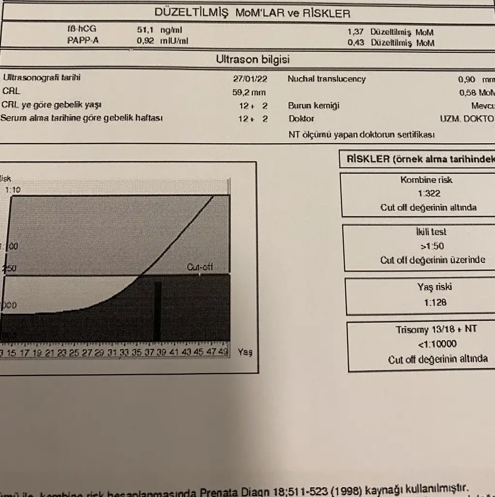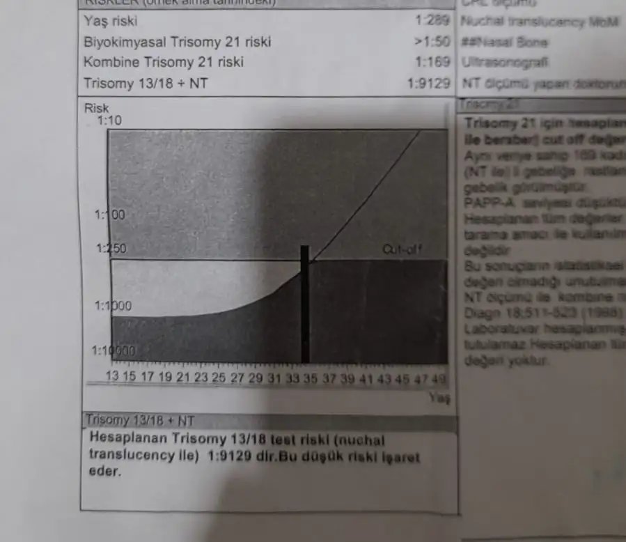 Görümcem daha 1 ay olmadı doğum yaptığı ikili testi riskşi çıkmıştı risk gözüküyor demiş doktoru ama çok şükür hiç bir sıkıntısı yok kısımızın🥰☺️ Bak onun ikili testini de atayım