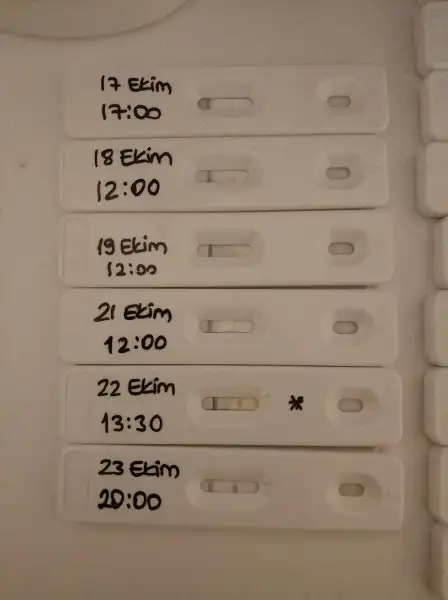 Aynı gün pik görmüşüz canım İnşaAllah bu ay tutar .Kızlar benim son ovulasyon testim böyle çıktı. Bı yorumlanabilir misiniz ? Anlamadım yarı açık renk gibi .?