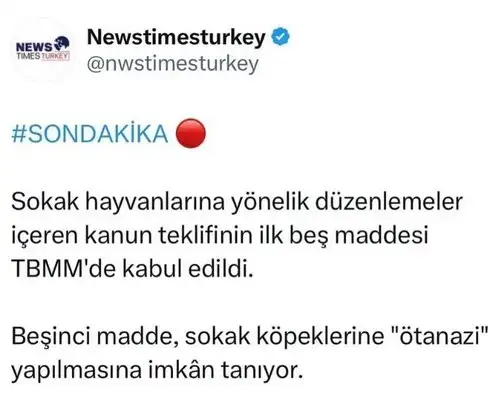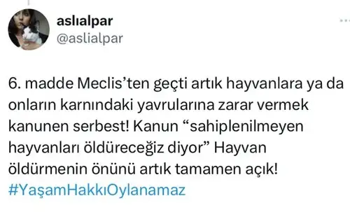 Kamuoyunda 'Katliam yasası' olarak bilinen Hayvanları Koruma Kanunu'nda değişiklik yapılmasına dair kanun teklifi, TBMM Genel Kurulu'nda kabul edilerek yasalaştı.