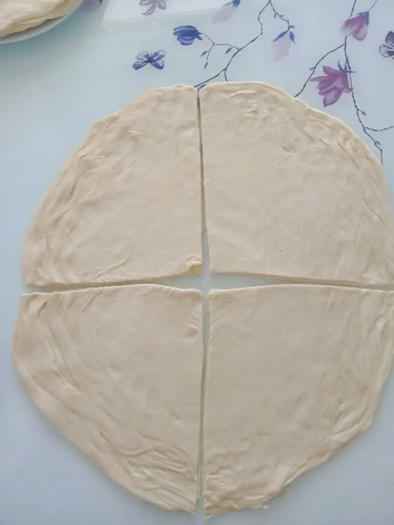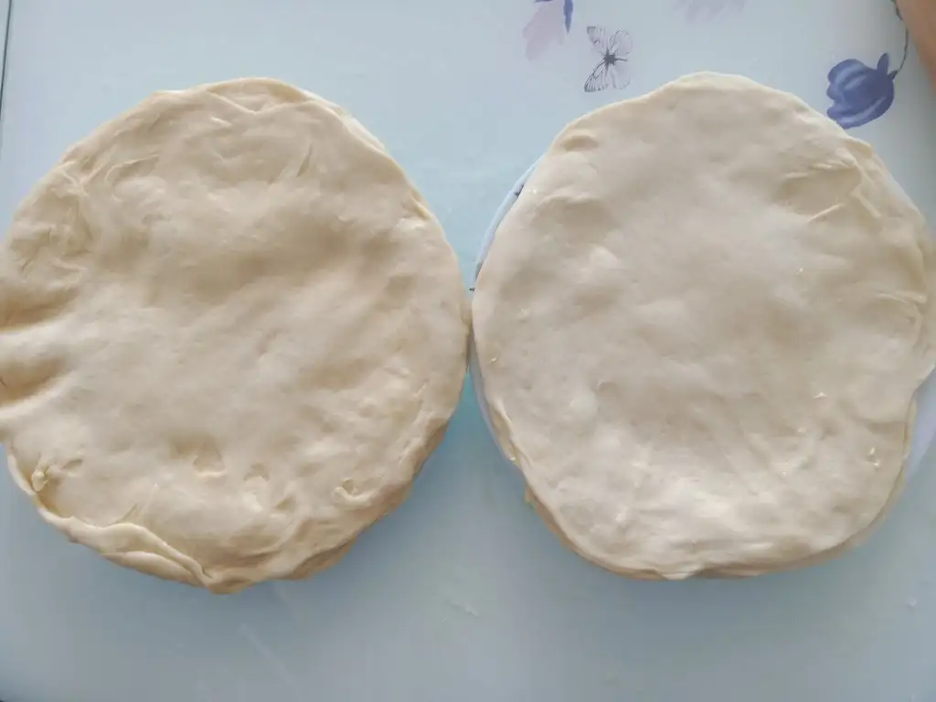 Bütün hamurdan toplam 18 beze çıkmalı. 9 bezenin her birini tabak büyüklüğünde açın.