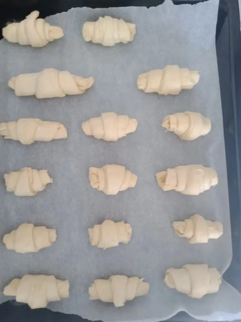 Yağlı kağıt serili tepsiye aralıklı dizin dilerseniz 5,10 dk tepsi mayası için bekletin.Daha sonra üzerine yumurta sarısını sürüp önceden ısıtılmış 230 derece fırında kızarana kadar pişirin.