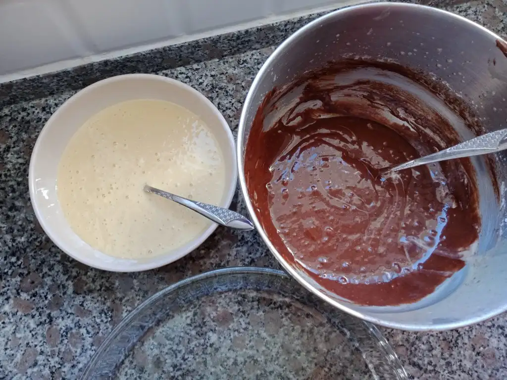 2. kekte kakaolu harç beyaz harca göre bir tık daha koyu oldu buda kakaolu kısmı dibe çöktürdü.Yani böyle düşündüm.
