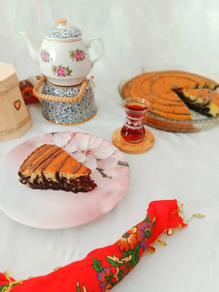Kek yapmaya çalıştım tabi bu sırada bir telaş oldu. Tam keki yaptım(tabi istediğim gibi olmadı)Sunuma geçtim.Kızımın üzerine çay döküldü. Öyle olunca sunuma devam edemedim.Ama ben o kadar uğraştım.Bir şekilde devam etmeliydim.