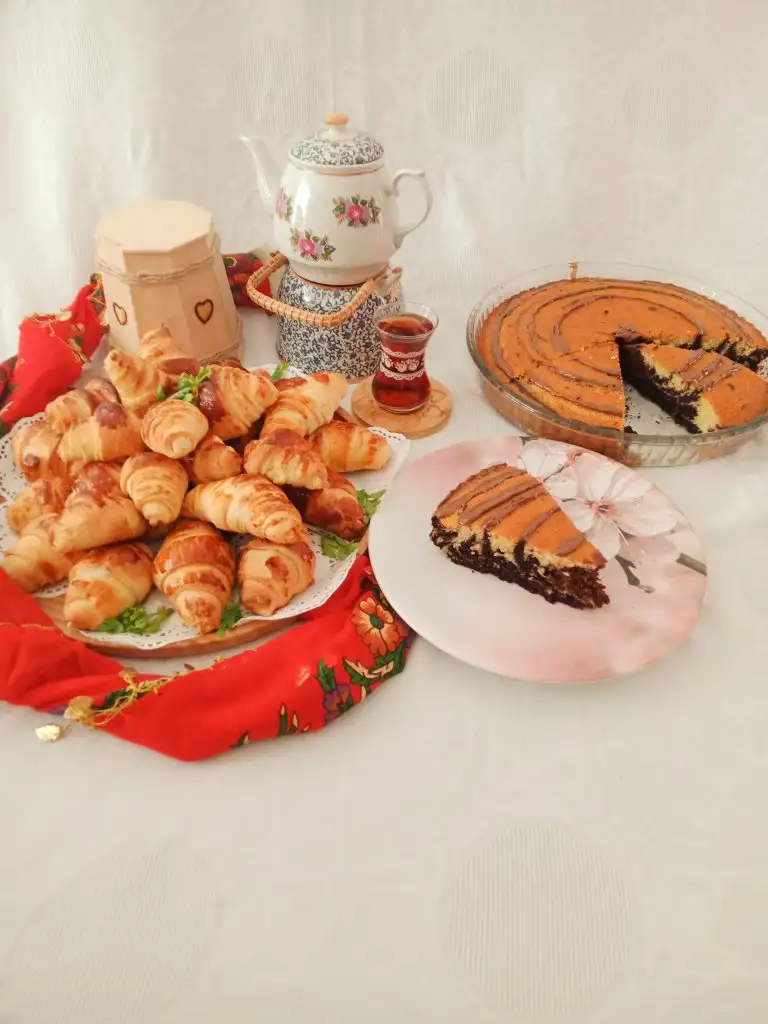 Öncelikle kekimi yaptım başta her şey çok iyiydi.Poğaçamı yaptım soframı kurdum.Birde ne göreyim benim afilli kek sönmüş.