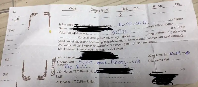 Eğer tutar kısmına örneğin sıfır eklenirse bilir kişi talep edebilirsiniz. Yazının size ait olmadığına dair. Üzerine maddi manevi tazminat davası açabilirsiniz.
