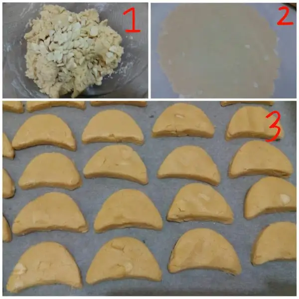Ay şeklinde kurabiye kalıbıyla şekil verip yağlı kağıt serdiğimiz fırın tepsisine diziyoruz.
