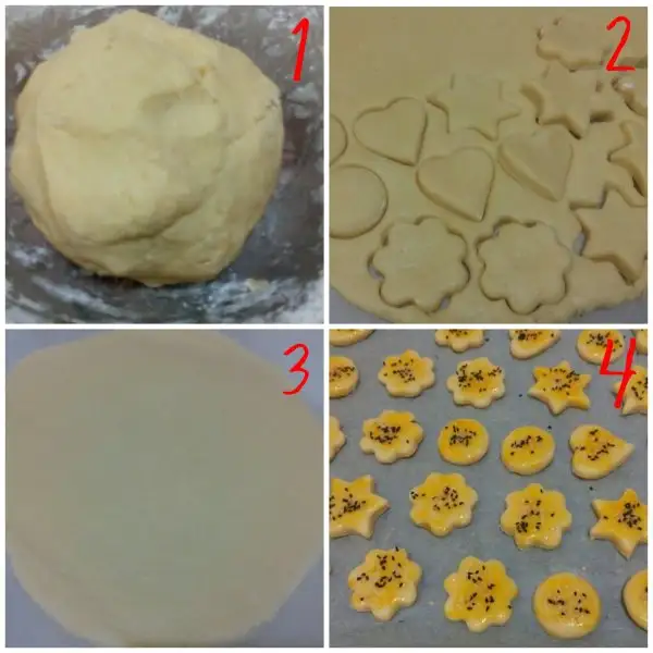 Kurabiye kalıplarıyla şekillendiriyoruz. Yağlı kağıt serdiğimiz fırın tepsisine diziyoruz.