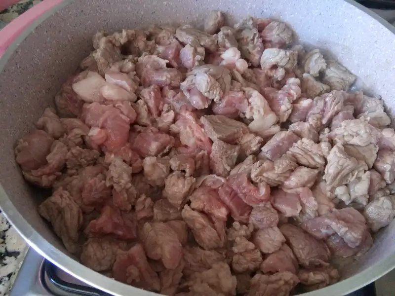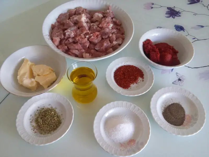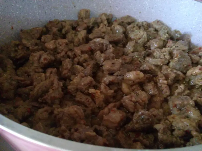 Etler pişip suyunu çekince üzerine sıvı yağımızı ,tuz,pulbiber, karabiber ve kekiği ekleyip kavuruyoruz..