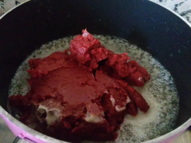 Üzerine 2 yemek kaşığı salçamızı ekleyip biraz kavuruyoruz...Eki Görüntüle 2048445