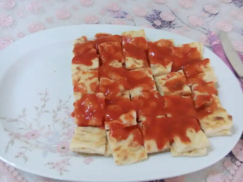 Pidemi dolaba koymuştum bu tarif için hatta küp küp kesmiştim bile