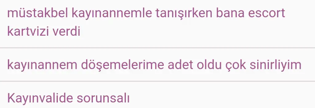 nerden anladın derseniz hadi kizçem ev gezmesi yapalim dedi bende gezdirdim sonra bi baktim ki her yer kan gölü olmuş beyaz döşemelerimi mahfettii her yer kan oldu kosla okse actionla denedim çıkmadı sinirden cııldırıyorum kocamdan mı bosansam artık napsam bilmiyorum bu aileye tek kelimeyle katlanamıyorum artık git evinde adet ol allahim ya