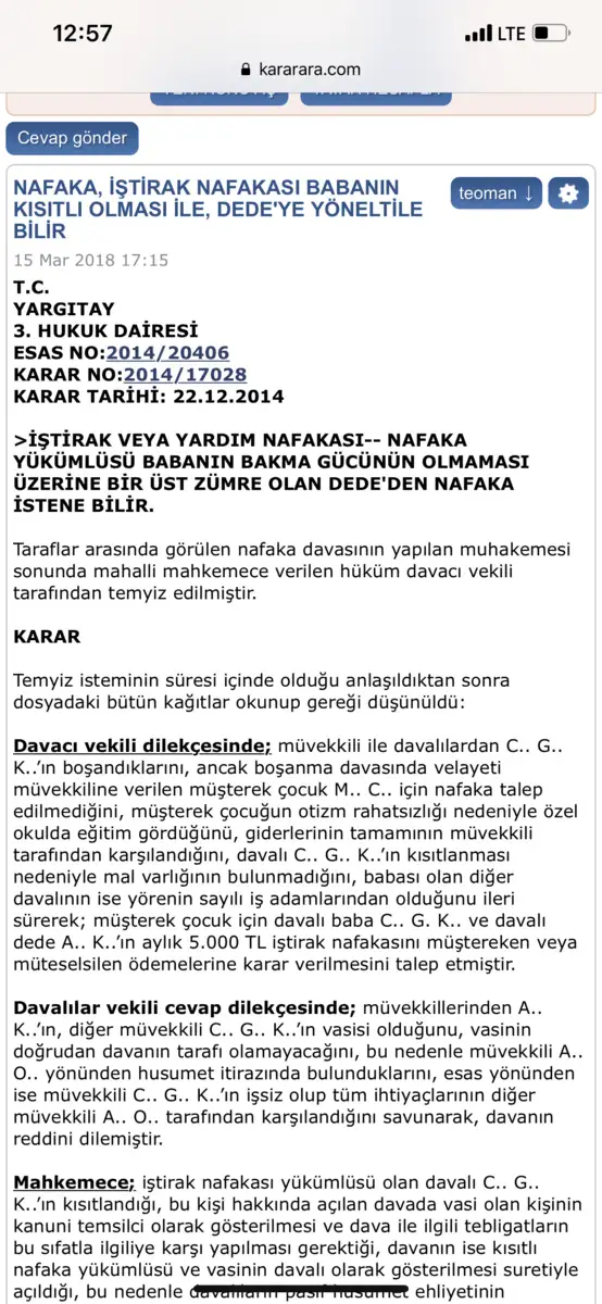 Gerçekten bu düşünce yapısıyla sonuçta nafakaların hepsi sınırlandırılacak.Siz diyelim ki adamdan iştirak nafakası istediniz ama ya adam da sizden yoksulluk nafakası isterse nolacak?