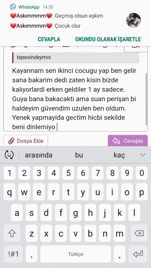 Az once basima cok kotu bisi geldi elim ayagim titriyor hala benim oglum portakal yiyemiyor hem kolik bebek olduğundan hem kizariyor hemde boğazına takılıyor posasi kaynanama elli milyon kerede soyledil eline portakal vermis boguluyordu cocugum kucagima aldim cevirdim kusturdum sinirlerim iyice gerildi gozlerinden yaslar dokuldu oğlumun
