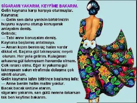 ''Bir gün adam, sevgilisine annesini tanıştırmak istemiş. 'Sana iki tane kadın getireceğim. Hangisi annem bilirsen evleneceğiz.' demiş.