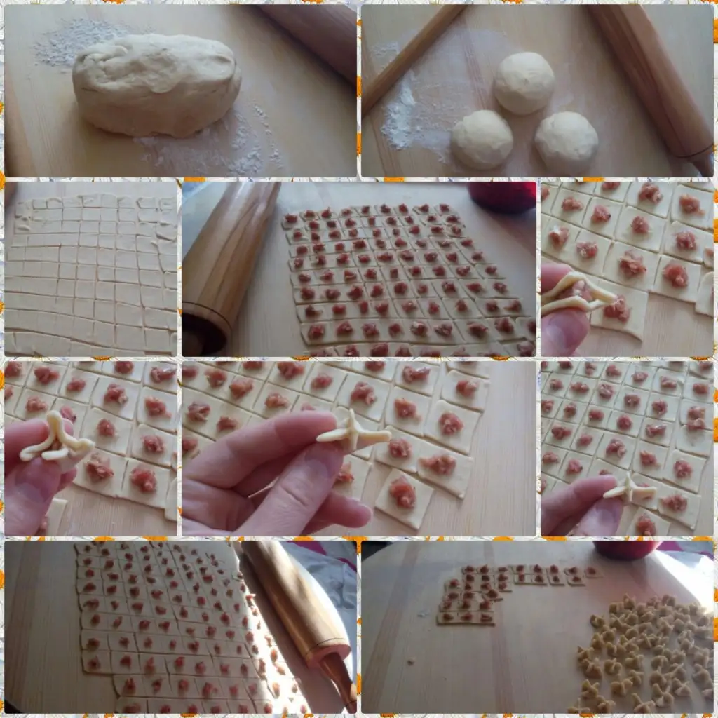 Hazırlanışı:Malzemeleri yoğurup biraz sert bir hamur elde ediyoruz.3 bezeye ayırıyoruz ve bezelerimizi oklava ve merdane yardımı ile açıyoruz.Açtığımız yufkayı kenar uzunluğu 2,3santim olan karaler elde edecek şekilde bıçakla kesiyoruz.